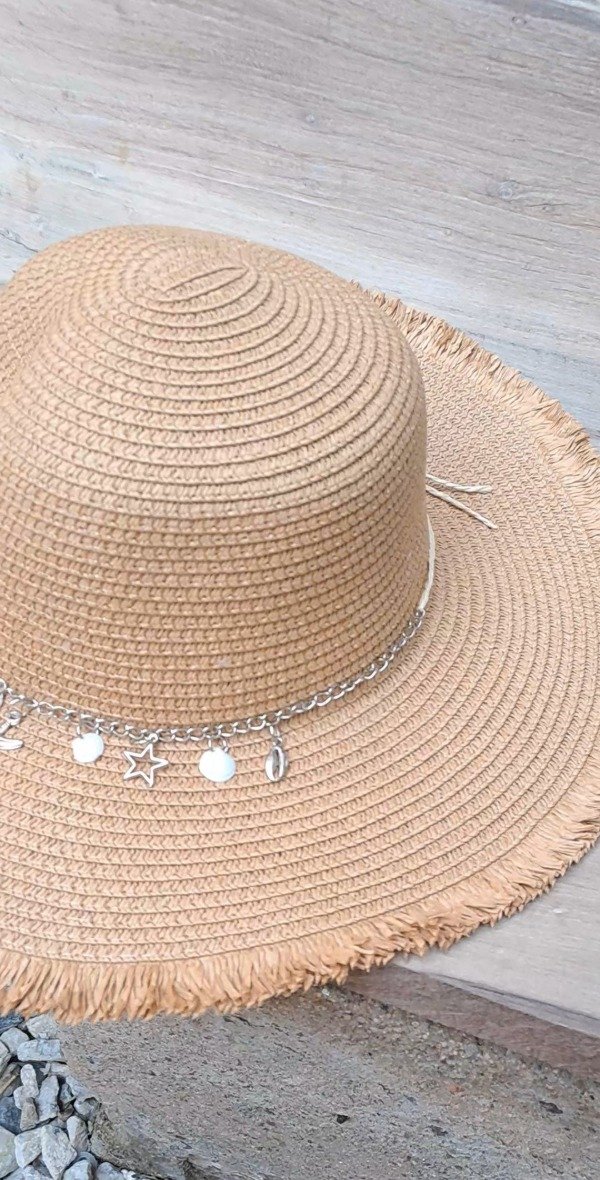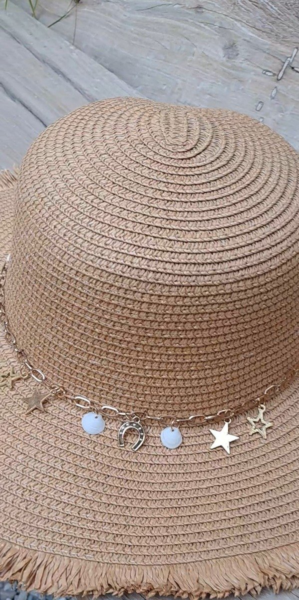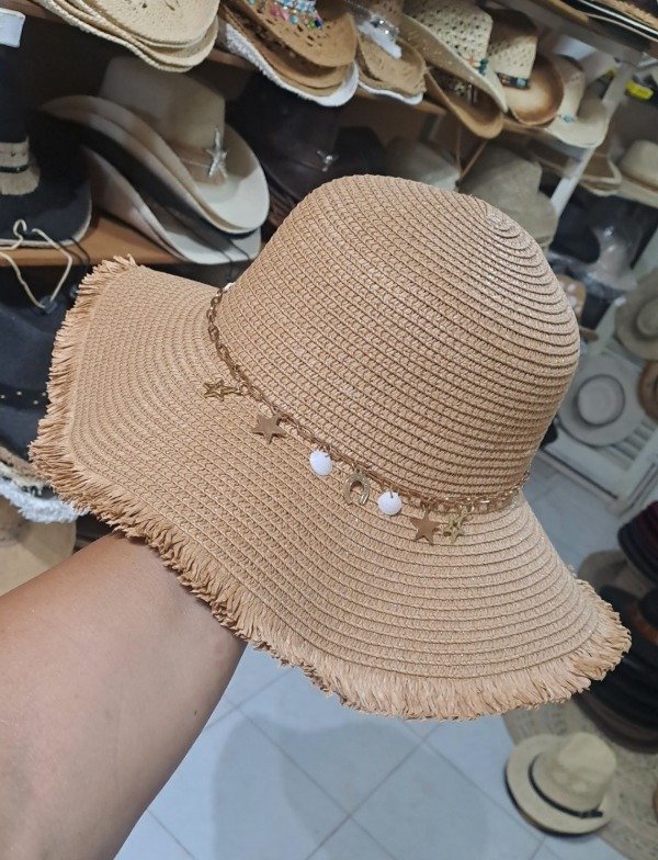 Capelina de rafia con cinta interna para achicar y detalle bordado a mano